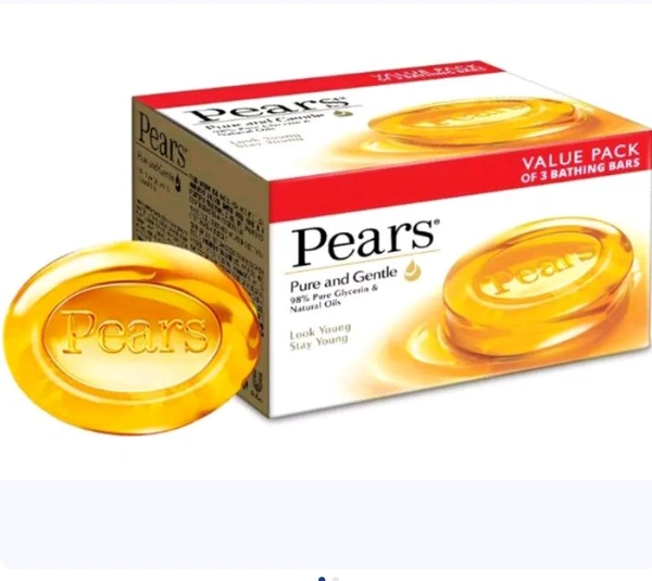 Rediscover the beauty of soft, hydrated skin with the trusted care of Pears Pure & Gentle Soap Bar 3U X 125g. Your skin deserves nothing but the best. Order now from RAM KIRANA and bring home the timeless goodness of Pears!